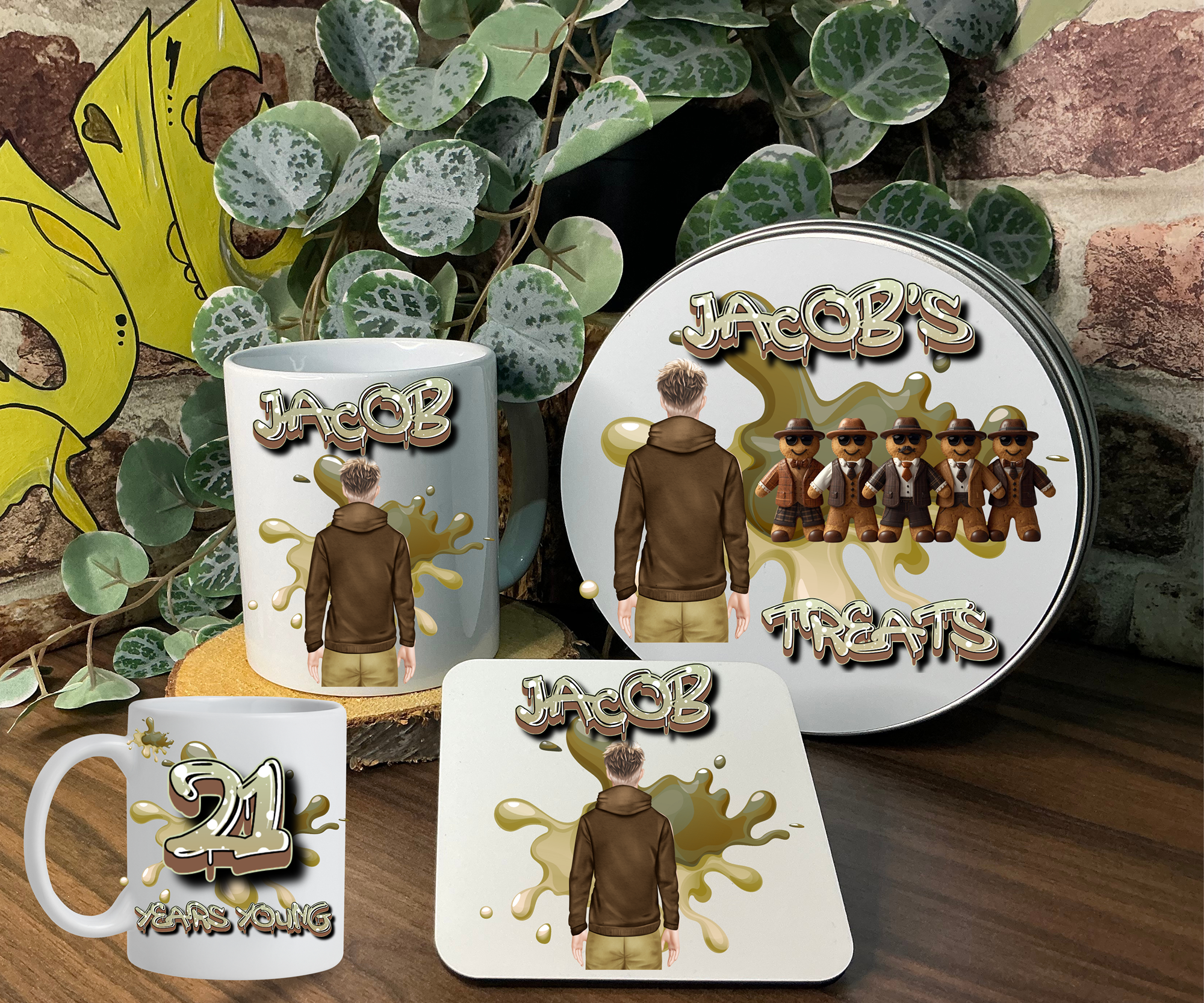 Oh, and did I mention that you can upgrade to include a personalised biscuit tin to go with it? The full set includes a mug, a coaster and a biscuit tin all in a gift box too. You could nip the local shop and buy him his fave biscuits and it's job done.